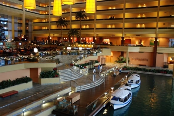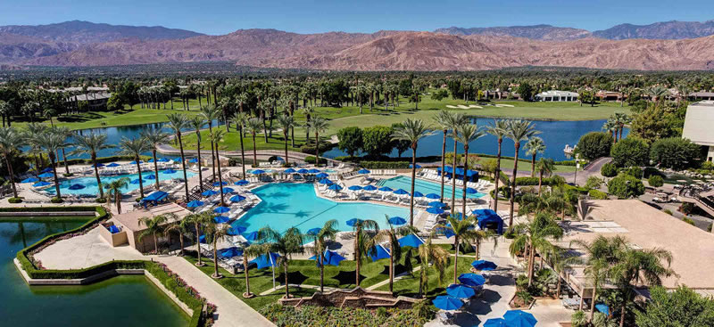 The JW Marriott Desert Springs Resort & Spa is a contemporary 5 star luxury resort located in the heart of Palm Desert. A true tropical oasis, the entrance is palm tree lined and the lobby is complete with cascading waterfalls and winding waterways. On-site the resort features 2 championship golf courses, Desert Springs Golf Club and Shadow Ridge Golf Club along with 6 dining options that offer a variety of cuisine from sushi to pizza. Enjoy the full service spa and salon along with a fitness center that offers Yoga, Punch and Kick, Fusion Pilates and much more.